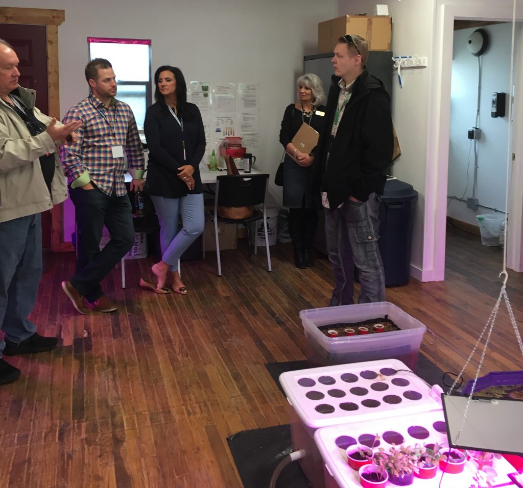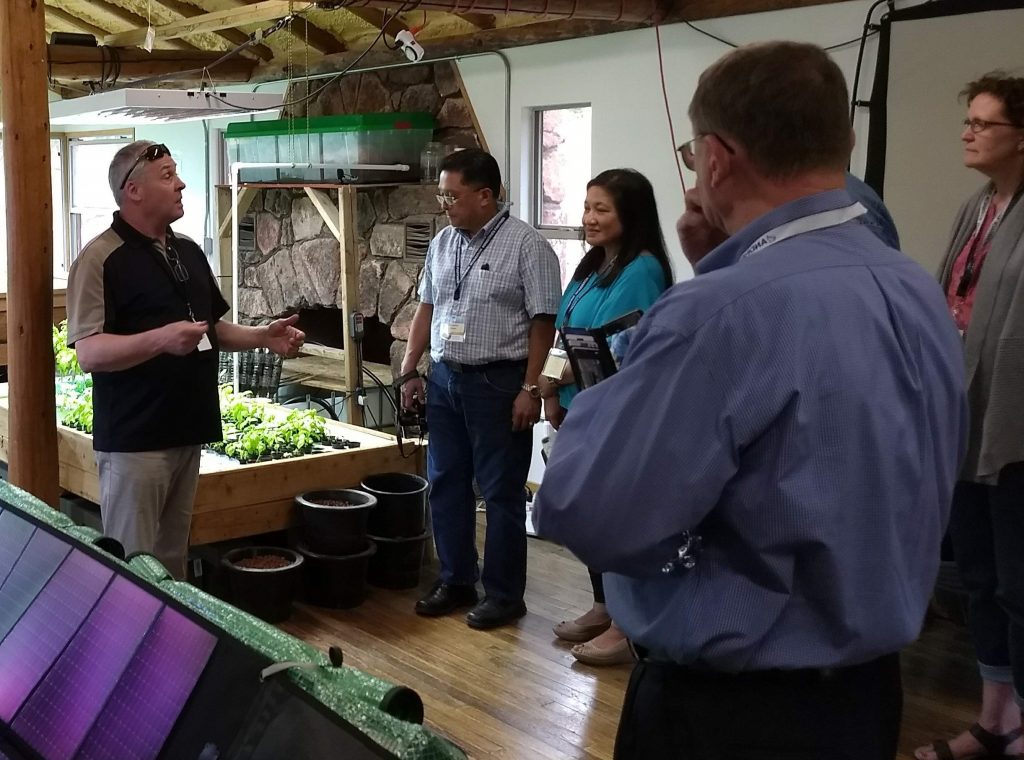 Matt Rowe (far right) talking to partners in our aquaponics unit in Woodland Park, Colorado