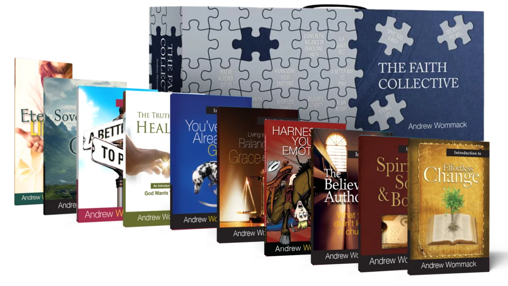 The Faith Collective Package condenses over ten of Andrew Wommack’s teachings into one practical resource to give you clarity, tools, and confidence to pray effectively, handle challenges with peace, and live in daily victory.